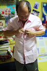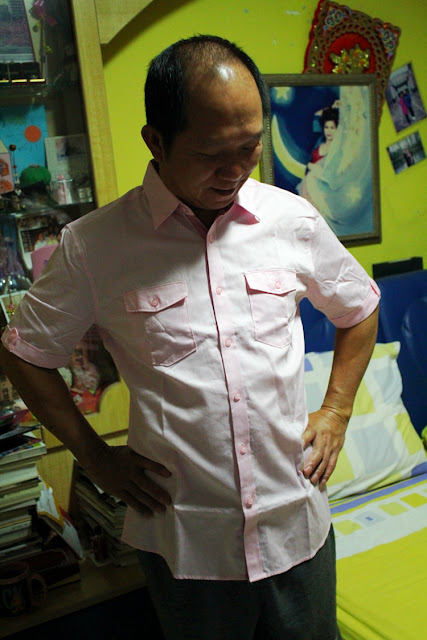 Keep saying that the shirt looks too young on him. HAHA! Younger look more handsome ma!