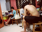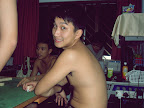 He say, "Take photo of my muscles!" Too bad, when I take he put down his hands already.