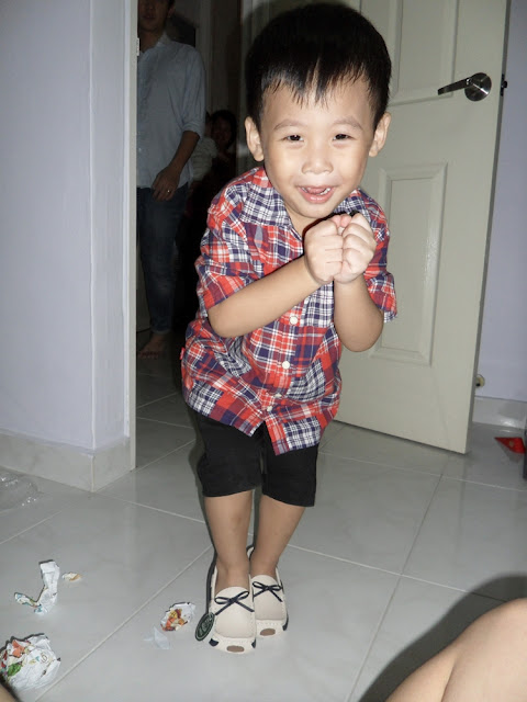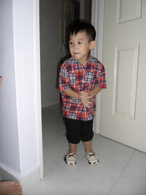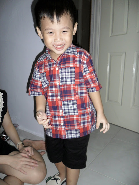And I bought him a pair of loafers! He's wearing the top that Dearest and I bought for him when he's 1 year old! HAHA! Dearest and I super kiasu, bought a 4 years old top for him when he's only 1 that time because the smallest size is 4 years old! LOL!