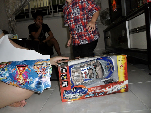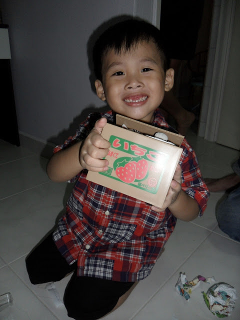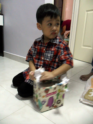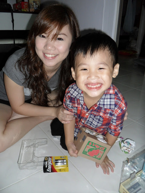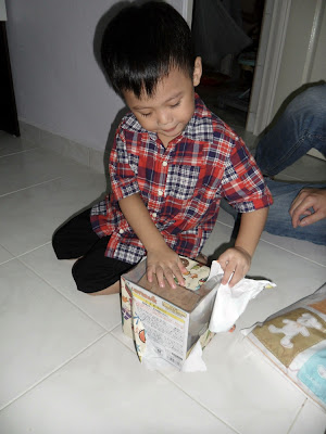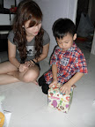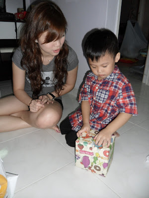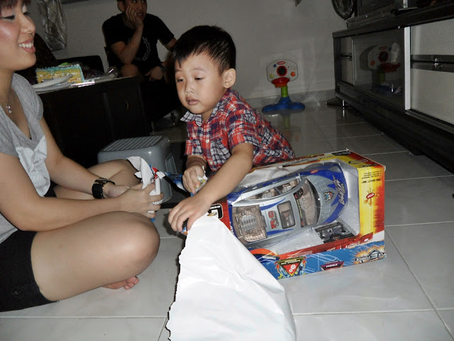 He like his prezzies a lot! He asked me, "who bought this shoe one? I like it leh" He thought it's Stephanie gan ma who bought for him one. :( Then i told him it's me!! The kids love Stephanie a lot one. I have little interaction with them, that's why! :(