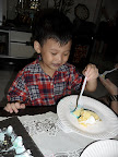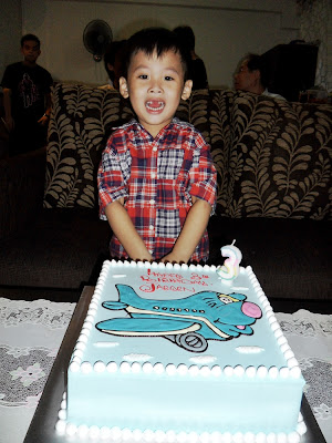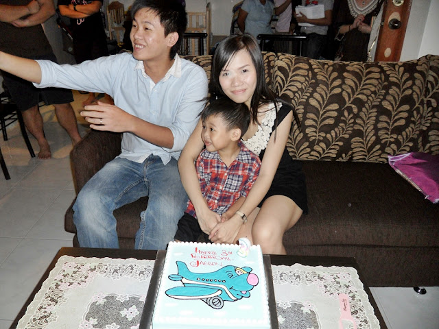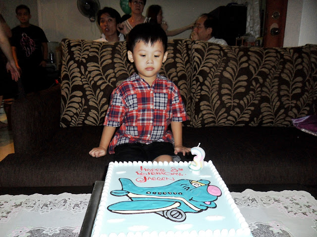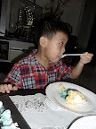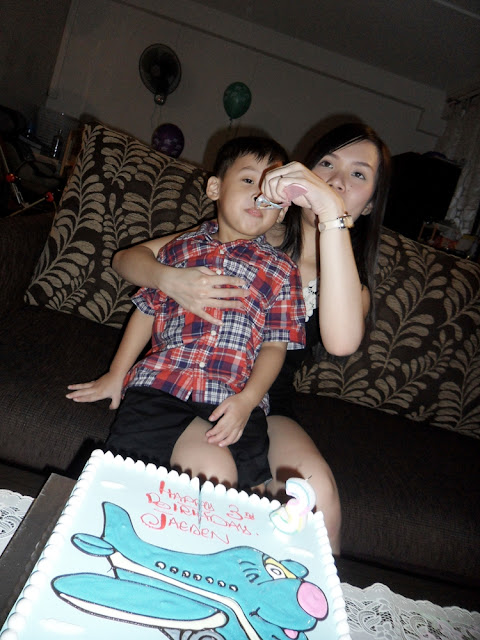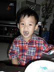 The cake 'dyed' my godson's mouth. Like vampire lah~~ Just that he don't have vampire teeth. :X