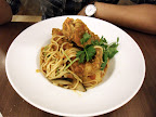 His crayfish spaghetti. Nice!