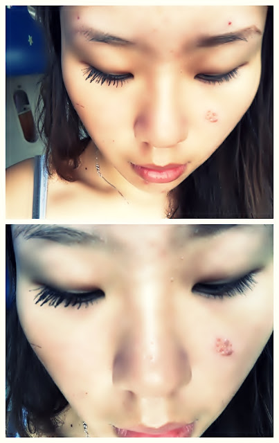 Can see the difference right? And i guess i edit too much this photos above. I don't have flawless skin like this! :( The orange colour 'pimple' on the left side of my face is actually my birthmark! Many thought i fell down as a result to this scar. It's my birthmark k! I don't know how many times i told people this. Even customers ask me. =.-