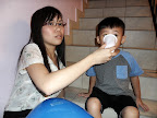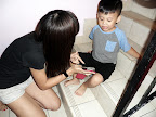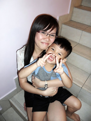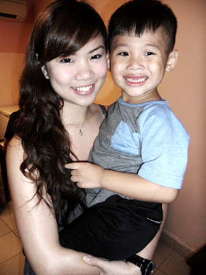 Mommy and son. Huiping look so lady-like now lah.