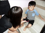 End up mommy's one sentence, "Want to go home not? Take photo with jiejie!" Then he must smile fakely and take. Cute much! HAHAHAHA!
